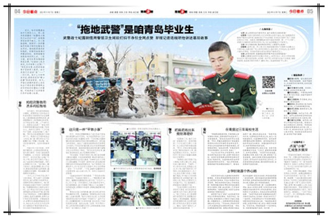 其实,军营中像纪露钢一样的优秀战士有很多,就像纪露钢接受采访时说的那样:“这只是一件小事,换成哪一个战友都会做出同样的举动。”而军民之间的感情恰恰就是通过点滴“小事”汇成鱼水情深。“暖心武警”真正温暖人心的,也是他提早洗好拖布,等战友都走后为餐馆老板清理地面的小细节。细节体现用心、体现真心。“人民子弟兵为人民”,一件小事便能真正体悟这句话的分量与价值。(本版撰稿 观海新闻/青岛早报记者 钟尚蕾)